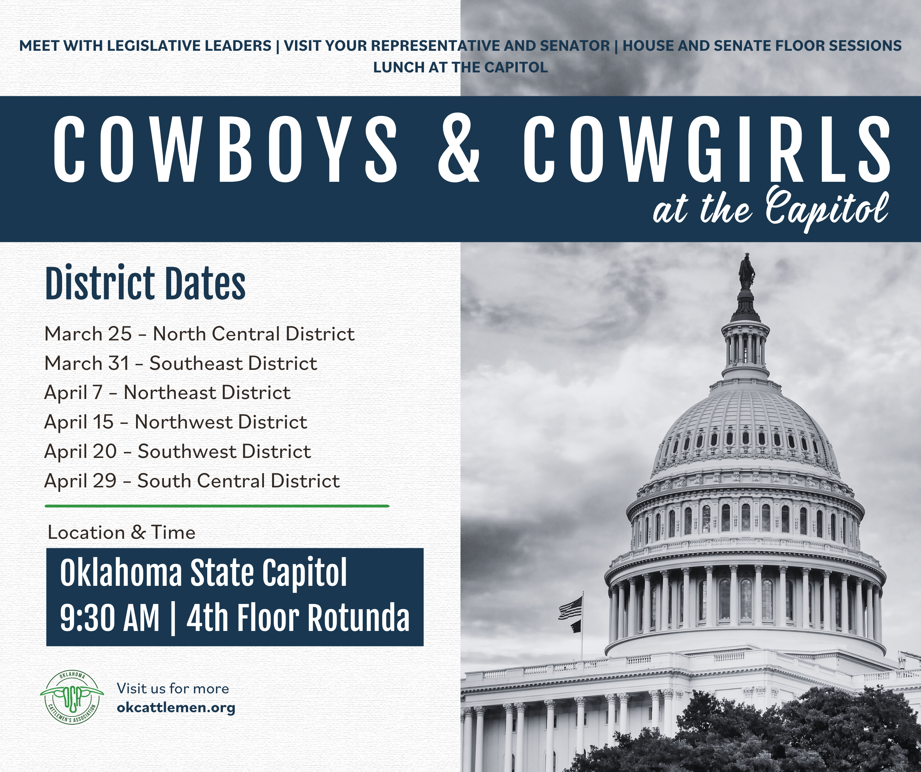 Cowboys and Cowgirls at the Capitol is Oklahoma Cattlemen’s Association’s annual legislative drive in that brings cattle producers from across the state to Oklahoma City to meet directly with lawmakers and state leaders.
