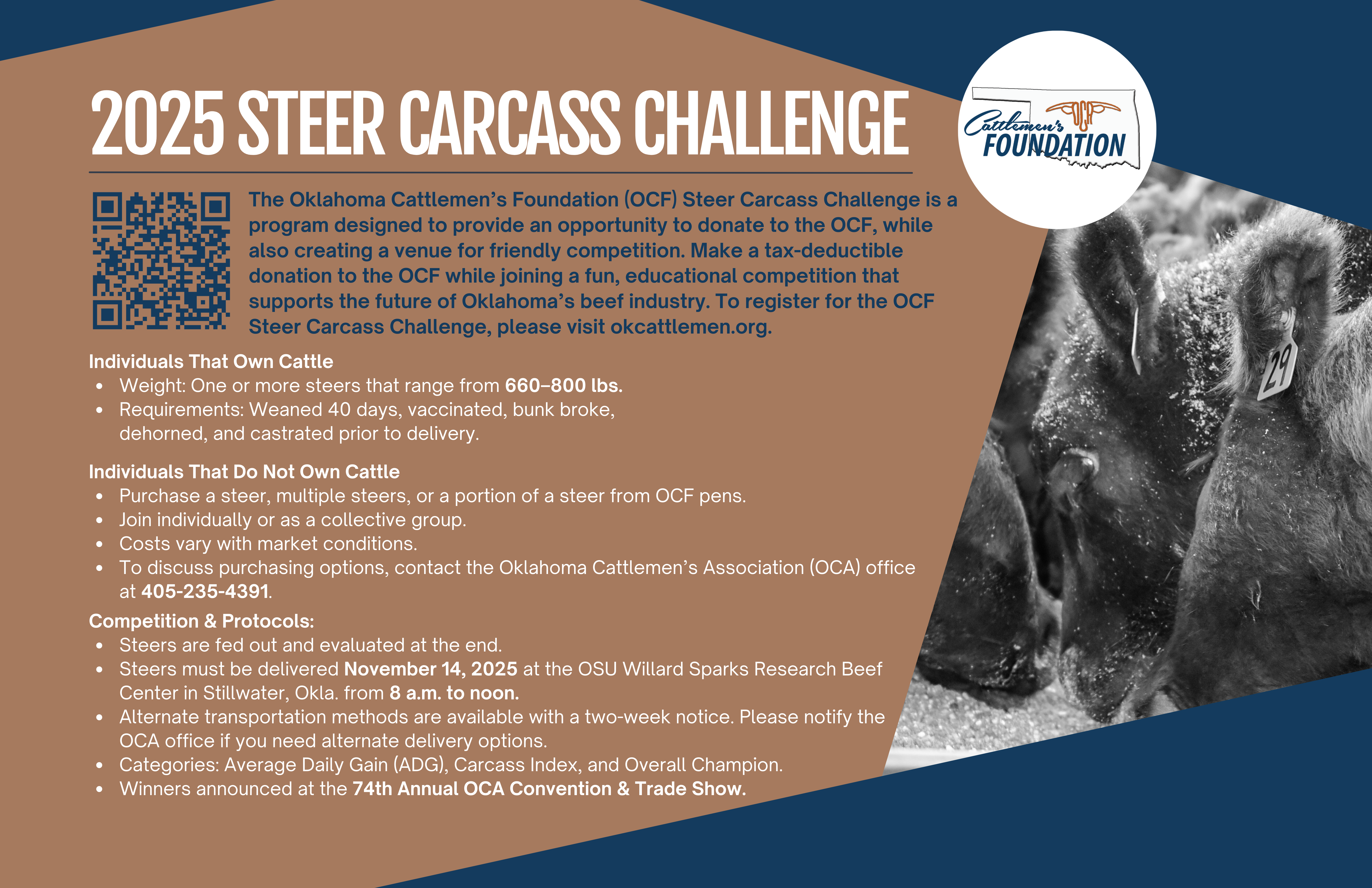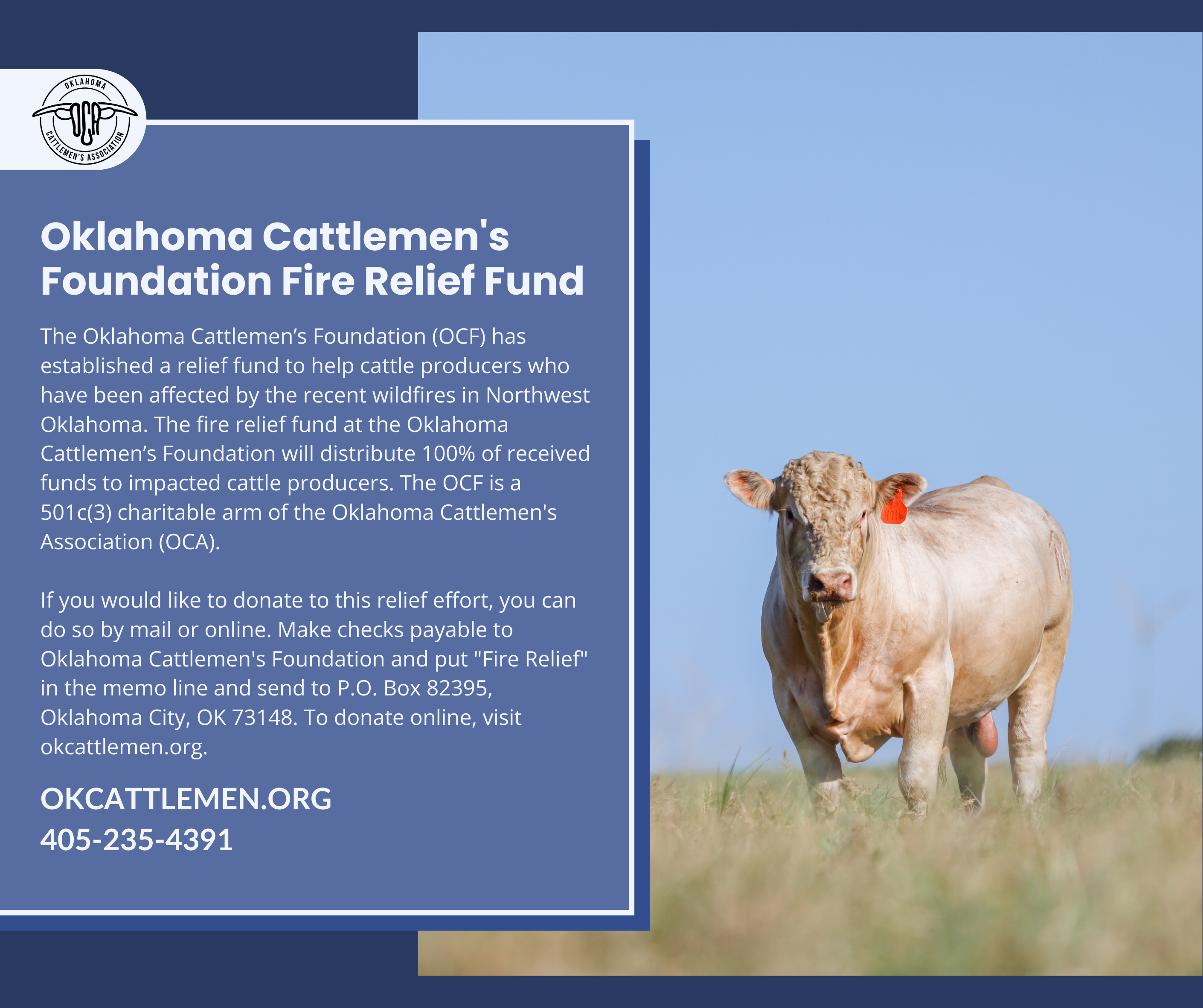 The Oklahoma Cattlemen’s Foundation is committed to preserving and promoting Oklahoma’s ranching heritage. As the charitable arm of the Oklahoma Cattlemen’s Association, OCF provides educational opportunities, supports youth through scholarships, and funds research that benefits the beef industry.