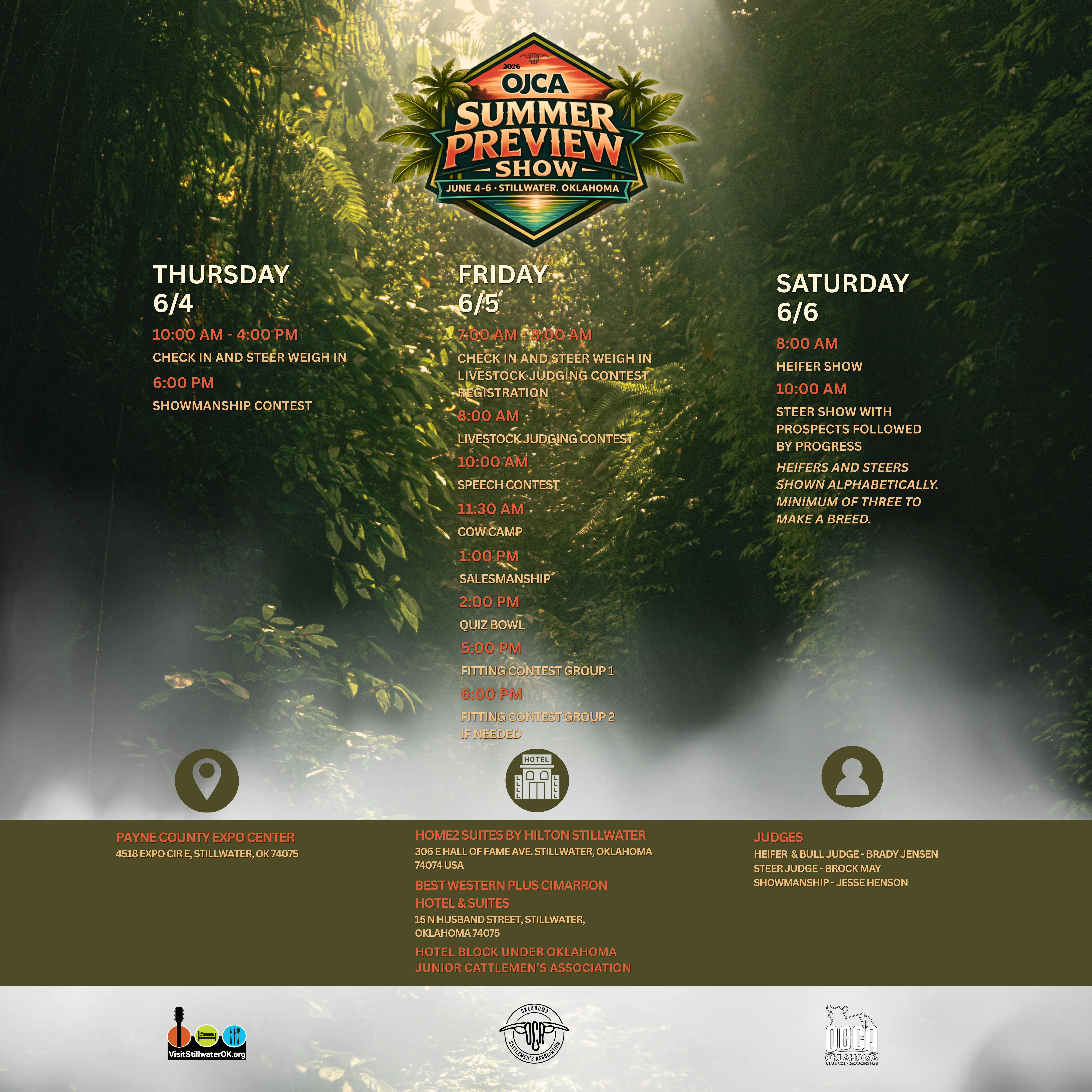 Empowering the next generation of cattle industry leaders, the OJCA is dedicated to providing Oklahoma youth with educational opportunities, leadership development, and hands-on experiences in the beef cattle industry. Through competitions, networking, and statewide events, members build lifelong skills and connections that fuel their passion for agriculture and set the foundation for future success.OJCA Summer Preview Show