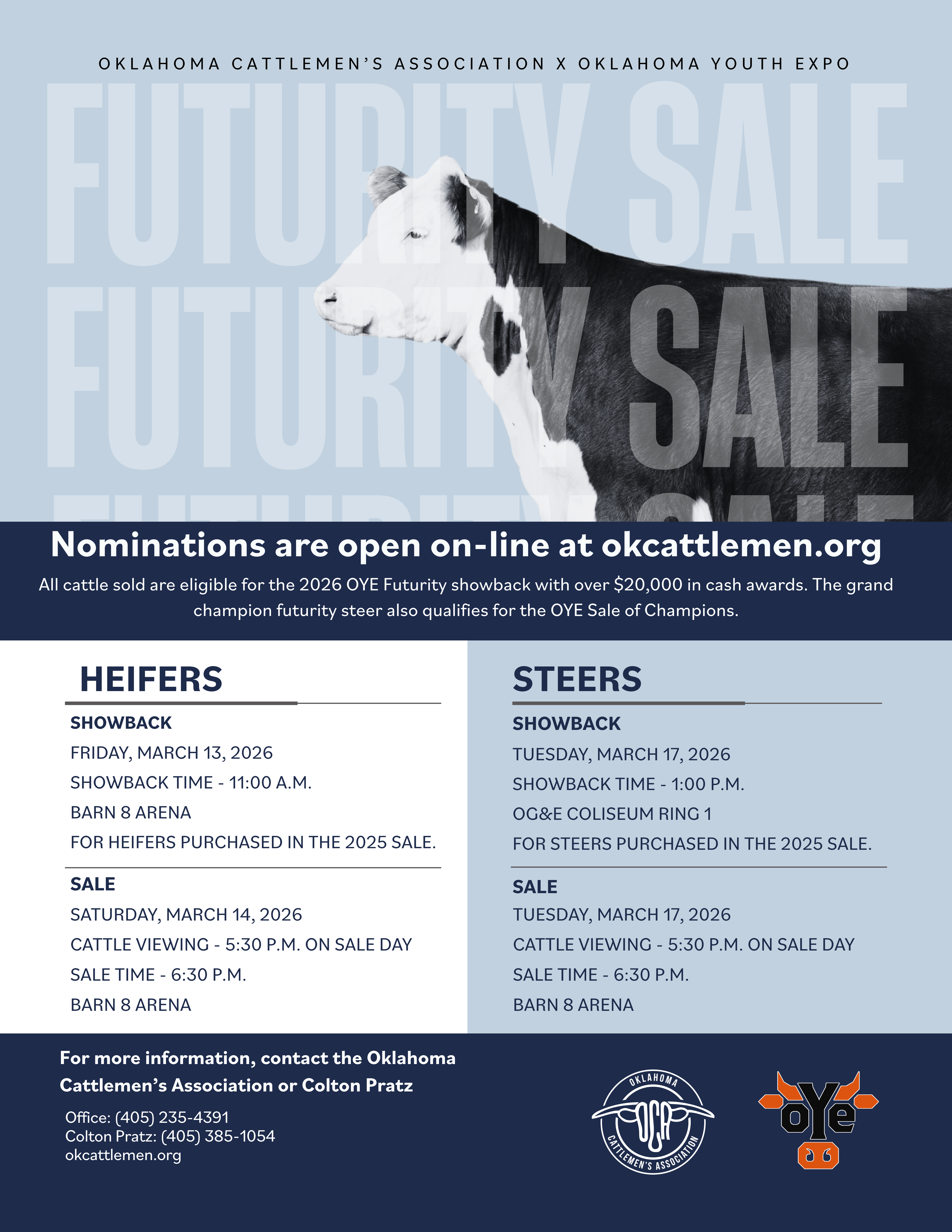 The Oklahoma Cattlemen's Association is happy to coordinate the steer and heifer futurity sales during the Oklahoma Youth Expo.